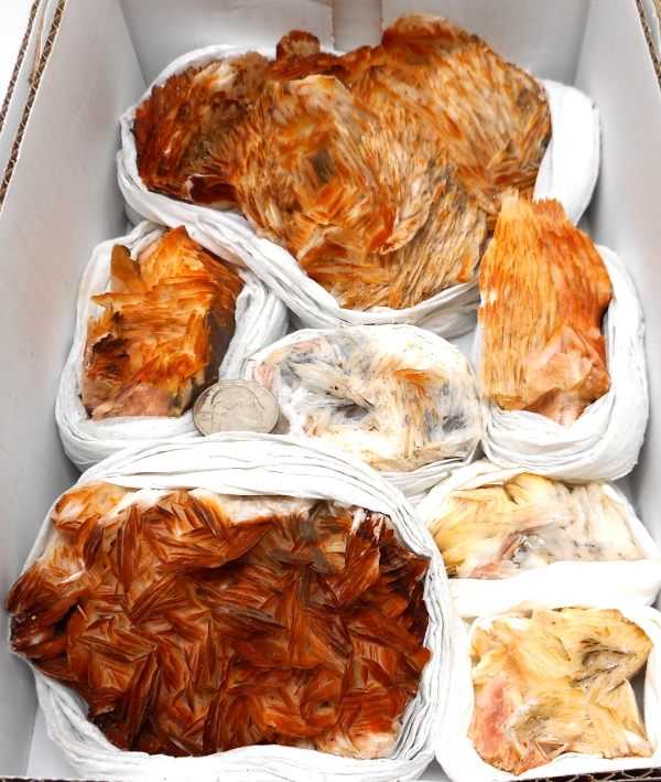 One large, 2 medium, 4 small very good Barite specimens in our standard half flat. This flat is the one you will receive.