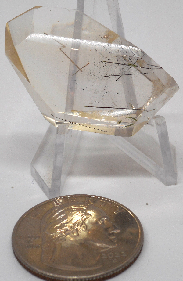 A very small, 1 3/8 inch light Citrine Freeform with great Rutile crystal Inclusions, the one in the picture is the one you will receive.