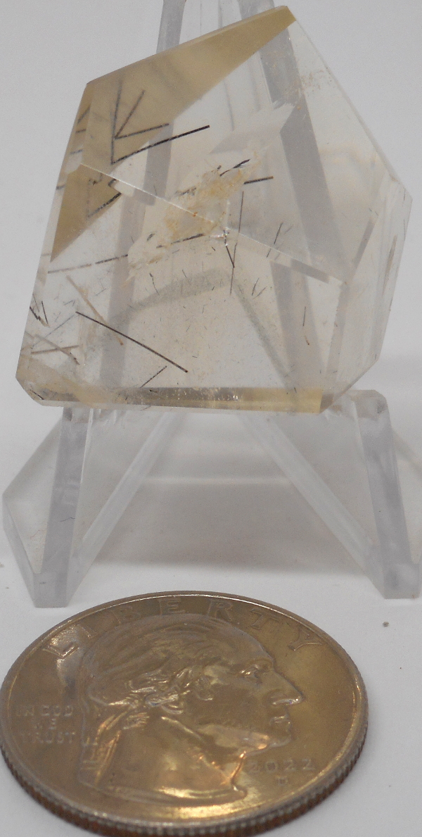 An excellent very small, 1 inch Polished Citrine Freeform with several Rutile crystals. The one in the picture is the one you will receive.