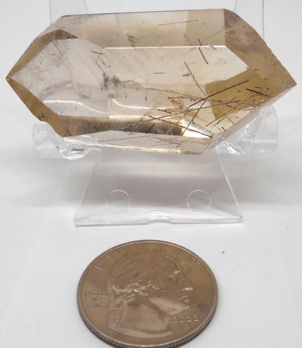 An excellent 2 inch Polished light Citrine DT with Rutile crystals. The one in the picture is the one you will receive.