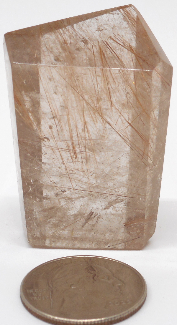 An odd shaped 2 inch tall Quartz Point with lots of red Rutile. Unique piece, the one in the picture is the one you will receive.